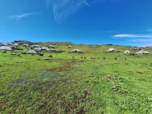 • 🏠 Tradicionalna planšarska arhitektura: pastirske hiše, kamnite ograje, planinska kulisa iz drugega časa.